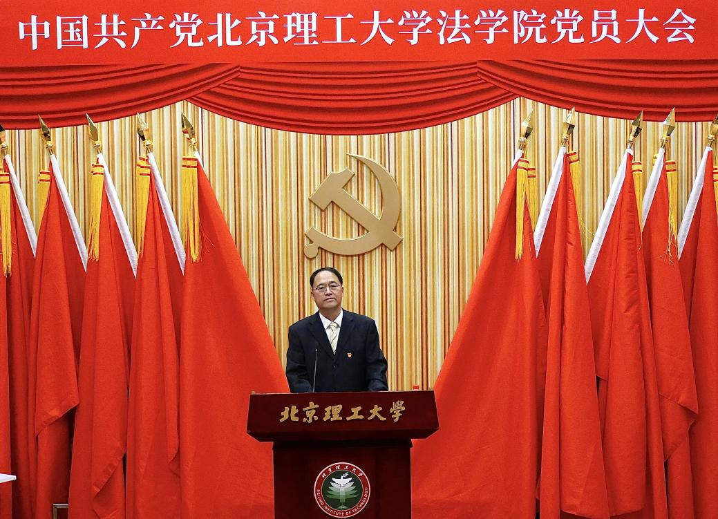 大会在庄严肃穆的《中华人民共和国国歌》中拉开帷幕。刘存福同志代表法学院党委做工作报告。他表示,五年来,在校党委的正确领导和分管领导的大力支持下,学院党委牢牢把握发展机遇,带领全院师生勠力同心,求真务实,学院各项事业实现跨越式发展,圆满完成任期目标任务。面向未来,学院党委将继续全面贯彻落实习近平新时代中国特色社会主义思想,特别是习近平法治思想,强化政治引领,实施理论武装与工作实践深度融合计划;强化系统观念,实施高质量党建引领高质量发展计划;强化特色发展,实施学院内涵稳步提升计划;强化师生至上,实施幸福学院共建计划。他强调,学院党委将按照学校党委的“1-10-100”的战略目标指引和即将召开的第十六次党代会精神要求,集中全院师生智慧,创新引领、聚力突破,努力开创北理工特色一流法学院建设新局面!